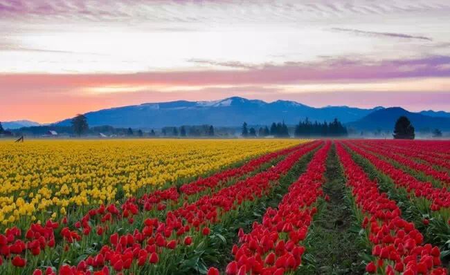 位于美国华盛顿州的斯卡吉特谷是北美最大的郁金香产地。每年4月份,各色各样的郁金香在此竞相开放,吸引了大量游客驱车欣赏。