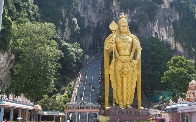 黑风洞位于吉隆坡,是一个石灰岩溶洞群,追溯到洞穴的形成,距今已有4亿年历史。作为印度教的朝拜胜地,黑风洞的山脚之下设有一座高140英尺全身镀金的姆鲁卡神像。游客要爬272级陡峭的石梯,才能从山脚走进这神秘的印度教圣地。
