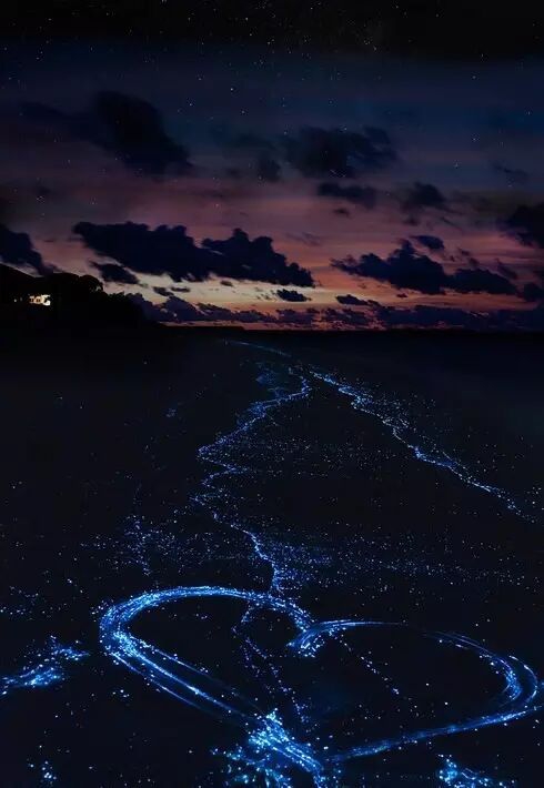 每当夜幕低垂,马尔代夫瓦度岛岸边的海水便会出现点点蓝光,彷如天空中闪烁的繁星。研究表明,这些神秘的蓝色光芒乃海上会发光的浮游植物所致。如此奇观在波多黎各的Vieques岛也能看到哦!
