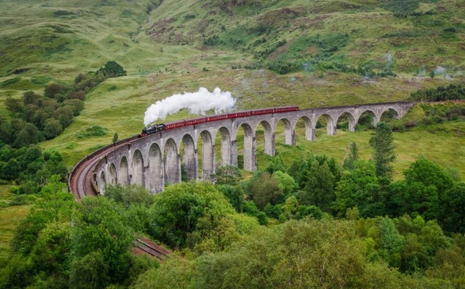 位于苏格兰高地西部的格伦菲南高架桥建于1898年,由21个拱组成。相信《哈利波特》迷一定对它颇有印象,电影中几位主角飞车前往霍格沃兹魔法学校的一幕就是在这里取景。