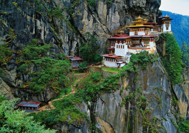 虎穴寺是不丹国内最神圣的佛教寺庙,坐落在Paro山谷中3000英尺高的悬崖壁上。寺内每个建筑都有一个观光阳台,优美的帕罗河谷风景尽收眼底。