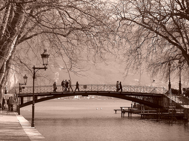 思想家卢梭在《忏悔录》中描写了他安纳西度过的人生中最美好的青年时光,他在这里邂逅并爱上了美丽的华伦夫人,而这座爱情桥据说就是他们约会的地方。如今来到安纳西的情侣们无不前来追忆,这里也是安纳西市民们最喜欢的散步之地。这座爱情古桥仿佛时间静止,一直将幸福见证下去。