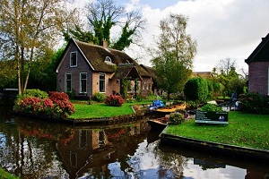 ![]() 羊角村前往“绿色威尼斯”之称(也有人称“荷兰威尼斯”)的羊角村游船,此由来是因为水面映像的都是一幢幢绿色小屋的倒影。 |
