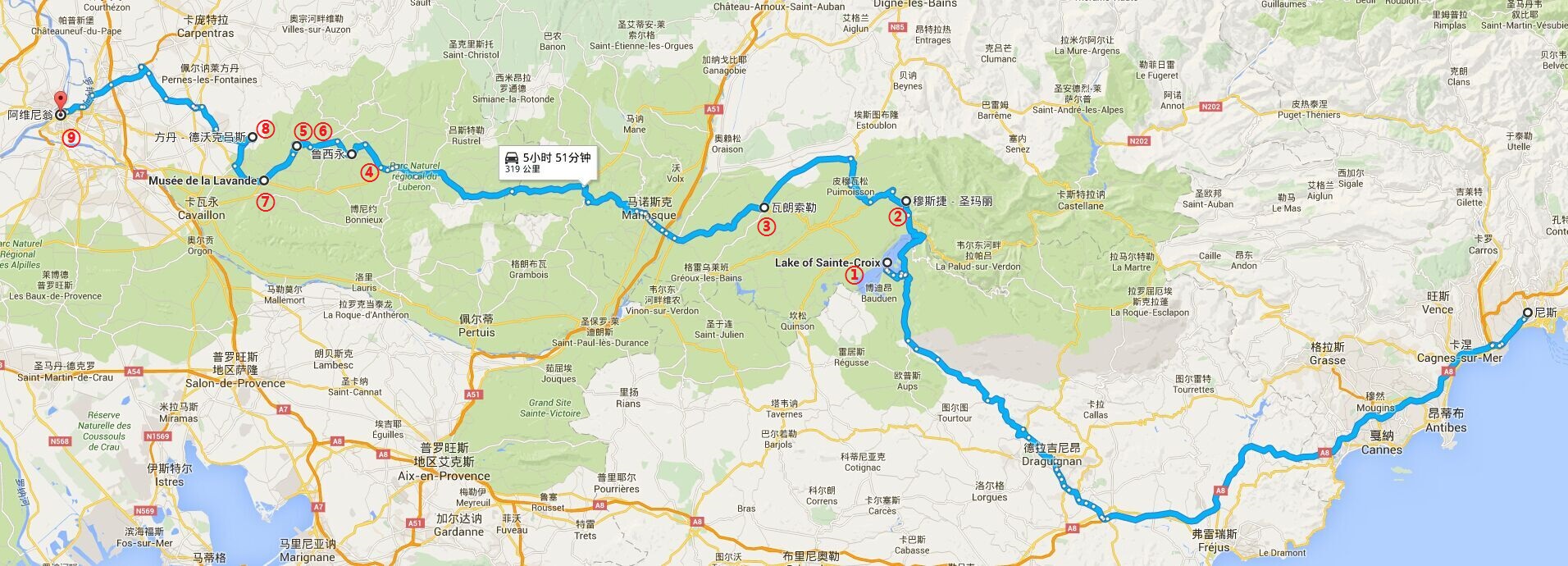 ![]() 尼斯——圣十字湖 (Lac du Saint Croix) 从尼斯出发,前往圣十字湖 (Lac du Saint Croix) ,普罗旺斯必玩景点! 在圣十字湖入口有很多当地法国船家出租船只,船只样式比较多,价格也不经相同,可根据个人需要选择,一般每条每小时约15欧。夏天度假的人除了会选择划船进入大峡谷,还会选择在这里晒太阳游泳,因为这里的沙滩与马赛的沙滩完全不同,绝对是高质量的细沙,环境绝美,可称之为世外桃源。更让人惊喜的是,山谷里面有不少的瀑布,如果是垂怜大自然天宫雕琢的你,可不要错过哦!